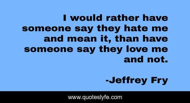 This page presents the quote "I would rather have someone say they hate me and mean it, than have someone say they love me and not.". Author of this quote is Jeffrey Fry. This quote is about mean-it, love, affection, hate,.
