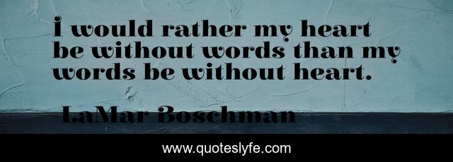 This page presents the quote "I would rather my heart be without words than my words be without heart.". Author of this quote is LaMar Boschman. This quote is about heart, words, speechless,.