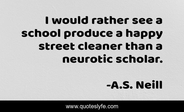This page presents the quote "I would rather see a school produce a happy street cleaner than a neurotic scholar.". Author of this quote is A.S. Neill. This quote is about education, happiness, learning,.