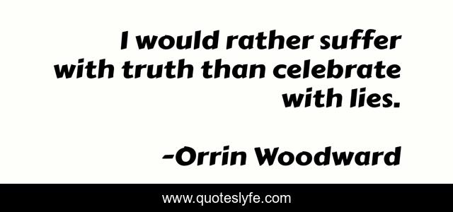 This page presents the quote "I would rather suffer with truth than celebrate with lies.". Author of this quote is Orrin Woodward. This quote is about lies, reputation, character, truth,.