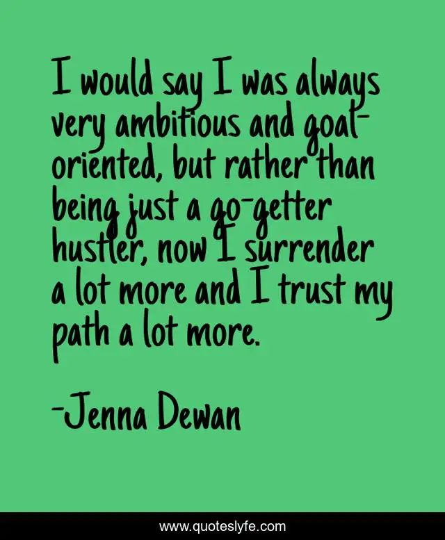 This page presents the quote "I would say I was always very ambitious and goal-oriented, but rather than being just a go-getter hustler, now I surrender a lot more and I trust my path a lot more.". Author of this quote is Jenna Dewan. This quote is about path, always,.
