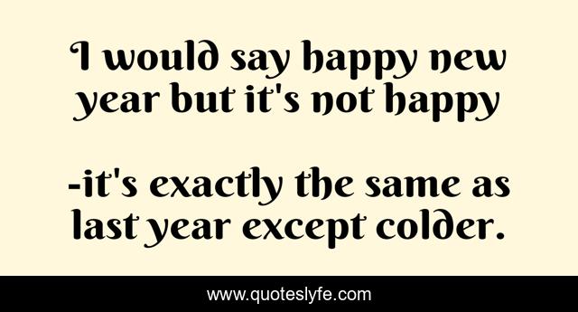 "it's exactly the same as last year except colder. Quotes." Quoteslyfe.com, 2025. Mon. 08 Dec. 2025. <https://www.quoteslyfe.com/quote/I-would-say-happy-new-year-but-55288>.