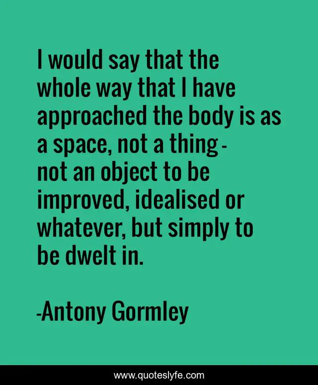 This page presents the quote "I would say that the whole way that I have approached the body is as a space, not a thing - not an object to be improved, idealised or whatever, but simply to be dwelt in.". Author of this quote is Antony Gormley. This quote is about body, way,.