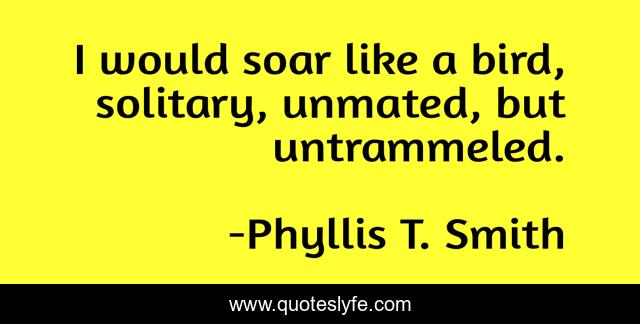 This page presents the quote "I would soar like a bird, solitary, unmated, but untrammeled.". Author of this quote is Phyllis T. Smith. .
