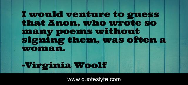 This page presents the quote "I would venture to guess that Anon, who wrote so many poems without signing them, was often a woman.". Author of this quote is Virginia Woolf. .