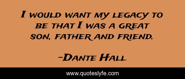 This page presents the quote "I would want my legacy to be that I was a great son, father and friend.". Author of this quote is Dante Hall. This quote is about great, father, son,.