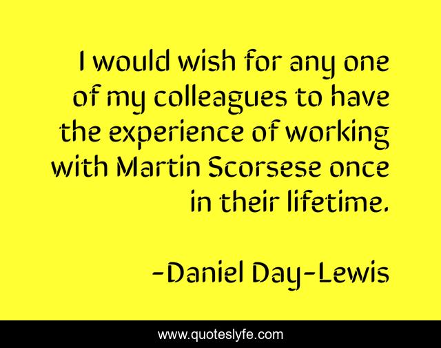 This page presents the quote "I would wish for any one of my colleagues to have the experience of working with Martin Scorsese once in their lifetime.". Author of this quote is Daniel Day-Lewis. This quote is about wish, colleagues, working,.