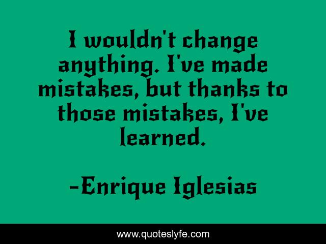 This page presents the quote "I wouldn't change anything. I've made mistakes, but thanks to those mistakes, I've learned.". Author of this quote is Enrique Iglesias. This quote is about mistakes, thanks, change,.