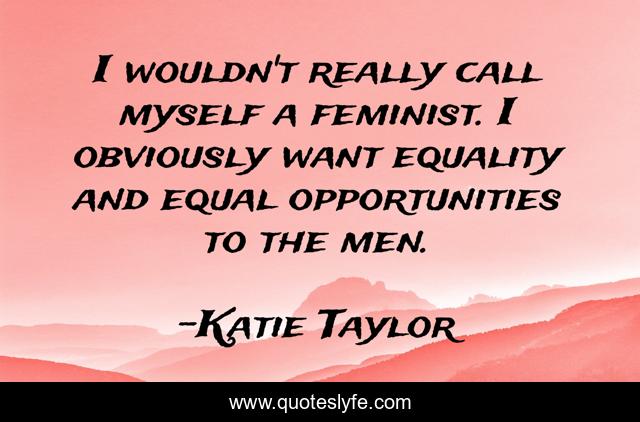 This page presents the quote "I wouldn't really call myself a feminist. I obviously want equality and equal opportunities to the men.". Author of this quote is Katie Taylor. This quote is about myself, men, opportunities,.