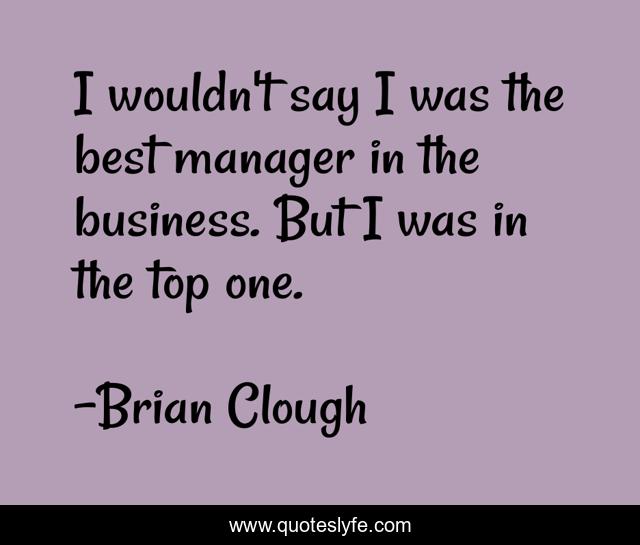 This page presents the quote "I wouldn't say I was the best manager in the business. But I was in the top one.". Author of this quote is Brian Clough. This quote is about manager, best,.