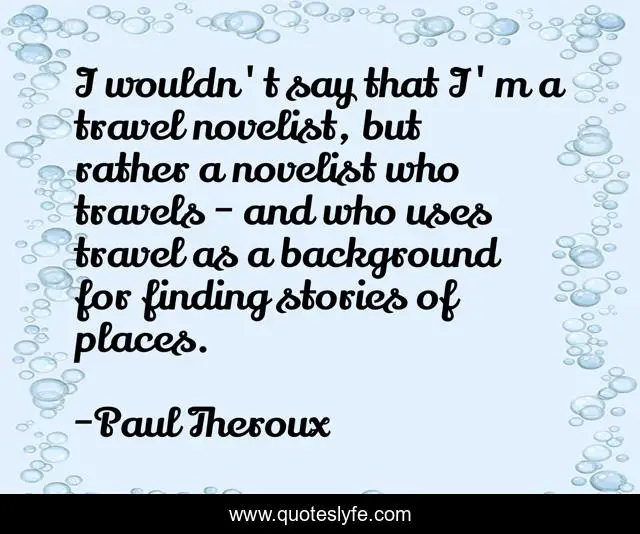 This page presents the quote "I wouldn't say that I'm a travel novelist, but rather a novelist who travels - and who uses travel as a background for finding stories of places.". Author of this quote is Paul Theroux. This quote is about finding, places,.