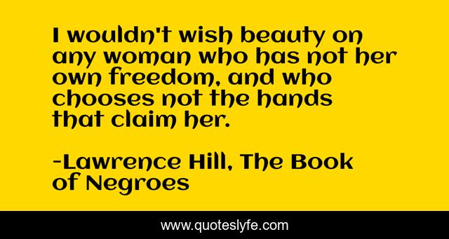 This page presents the quote "I wouldn't wish beauty on any woman who has not her own freedom, and who chooses not the hands that claim her.". Author of this quote is Lawrence Hill, The Book of Negroes. .