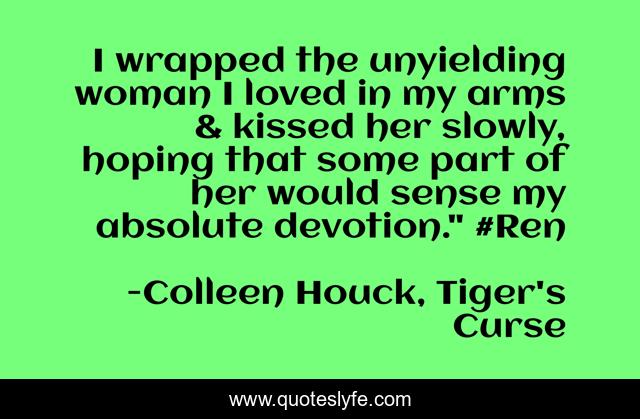 This page presents the quote "I wrapped the unyielding woman I loved in my arms & kissed her slowly, hoping that some part of her would sense my absolute devotion." #Ren". Author of this quote is Colleen Houck, Tiger's Curse. .