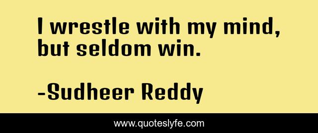 This page presents the quote "I wrestle with my mind, but seldom win.". Author of this quote is Sudheer Reddy. This quote is about deep-thoughts, win, mind,.