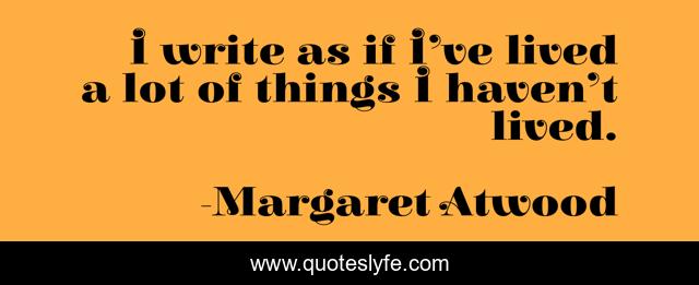This page presents the quote "I write as if I’ve lived a lot of things I haven’t lived.". Author of this quote is Margaret Atwood. .