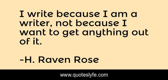 This page presents the quote "I write because I am a writer, not because I want to get anything out of it.". Author of this quote is H. Raven Rose. This quote is about on-being-a-writer, writer, on-writing,.