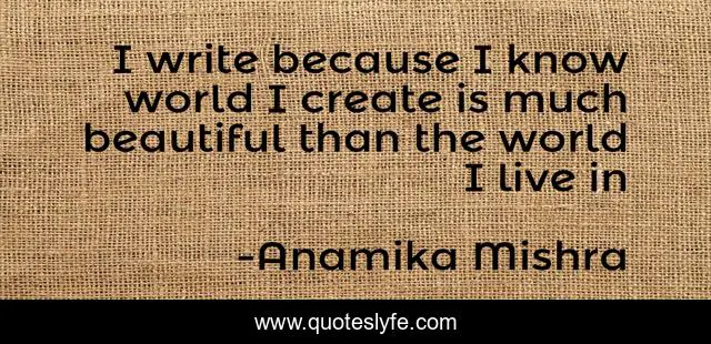 This page presents the quote "I write because I know world I create is much beautiful than the world I live in". Author of this quote is Anamika Mishra. This quote is about enthusiasm, writers, inspirational, writing,.