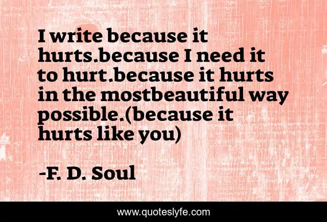 This page presents the quote "I write because it hurts.because I need it to hurt.because it hurts in the mostbeautiful way possible.(because it hurts like you)". Author of this quote is F. D. Soul. This quote is about beautiful, love, soul, affection, hurt,.
