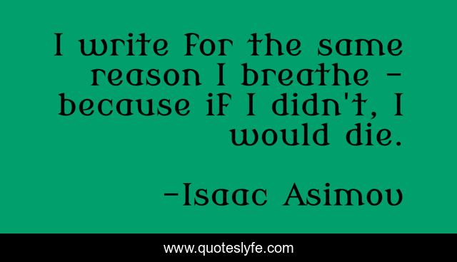 This page presents the quote "I write for the same reason I breathe - because if I didn't, I would die.". Author of this quote is Isaac Asimov. This quote is about positive, confidence, motivational, optimistic, writing,.