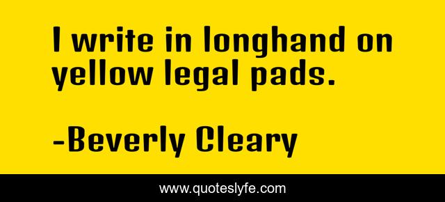 This page presents the quote "I write in longhand on yellow legal pads.". Author of this quote is Beverly Cleary. This quote is about write, yellow, i write,.
