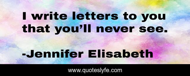 "Jennifer Elisabeth Quotes." Quoteslyfe.com, 2025. Fri. 05 Dec. 2025. <https://www.quoteslyfe.com/quote/I-write-letters-to-you-that-you-107472>.