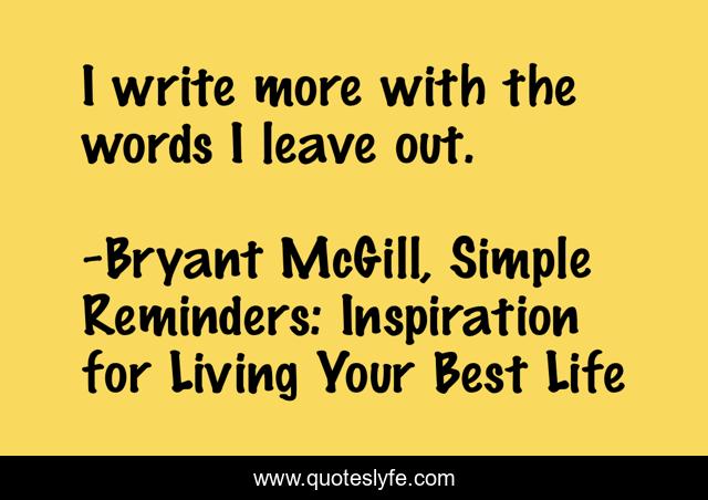"Bryant McGill, Simple Reminders: Inspiration for Living Your Best Life Quotes." Quoteslyfe.com, 2025. Fri. 05 Dec. 2025. <https://www.quoteslyfe.com/quote/I-write-more-with-the-words-I-113204>.
