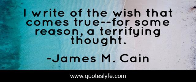 This page presents the quote "I write of the wish that comes true--for some reason, a terrifying thought.". Author of this quote is James M. Cain. .