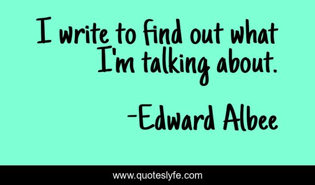 This page presents the quote "I write to find out what I'm talking about.". Author of this quote is Edward Albee. .