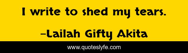 "Lailah Gifty Akita Quotes." Quoteslyfe.com, 2025. Fri. 05 Dec. 2025. <https://www.quoteslyfe.com/quote/I-write-to-shed-my-tears-123994>.