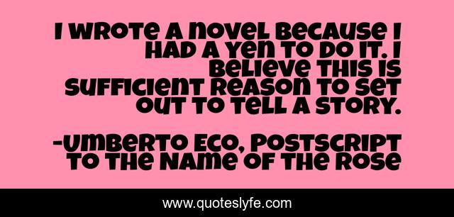 "Umberto Eco, Postscript to the Name of the Rose Quotes." Quoteslyfe.com, 2025. Mon. 08 Dec. 2025. <https://www.quoteslyfe.com/quote/I-wrote-a-novel-because-I-had-28026>.