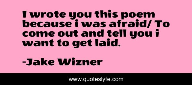 This page presents the quote "I wrote you this poem because i was afraid/ To come out and tell you i want to get laid.". Author of this quote is Jake Wizner. .