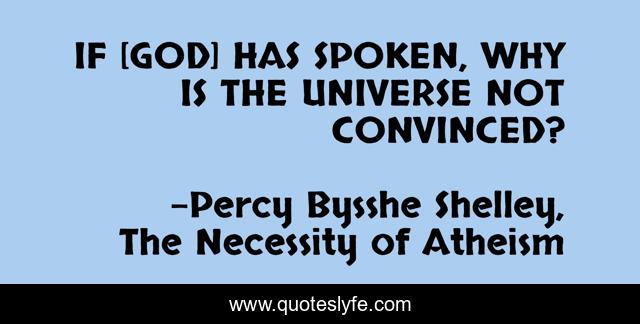 This page presents the quote "IF [GOD] HAS SPOKEN, WHY IS THE UNIVERSE NOT CONVINCED?". Author of this quote is Percy Bysshe Shelley, The Necessity of Atheism. This quote is about atheism, god,.