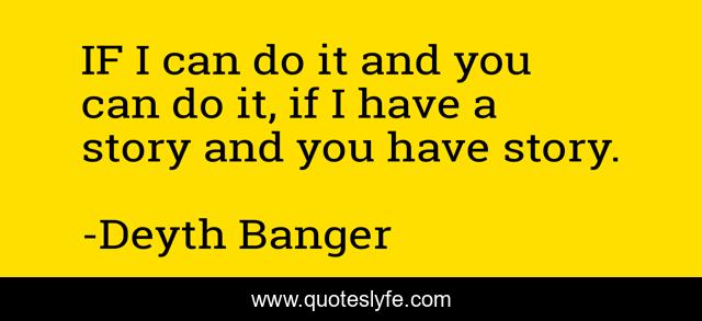 This page presents the quote "IF I can do it and you can do it, if I have a story and you have story.". Author of this quote is Deyth Banger. This quote is about me, selfish, story, not, can,.