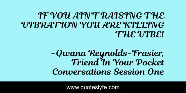 "Qwana Reynolds-Frasier, Friend In Your Pocket Conversations Session One Quotes." Quoteslyfe.com, 2025. Sun. 07 Dec. 2025. <https://www.quoteslyfe.com/quote/IF-YOU-AIN-T-RAISING-THE-VIBRATION-23164>.