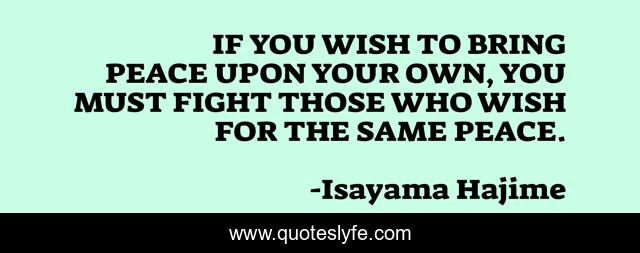 This page presents the quote "IF YOU WISH TO BRING PEACE UPON YOUR OWN, YOU MUST FIGHT THOSE WHO WISH FOR THE SAME PEACE.". Author of this quote is Isayama Hajime. This quote is about wish, peace, fight,.