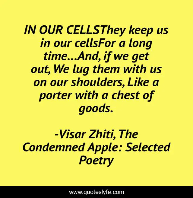 "Visar Zhiti, The Condemned Apple: Selected Poetry Quotes." Quoteslyfe.com, 2025. Fri. 05 Dec. 2025. <https://www.quoteslyfe.com/quote/IN-OUR-CELLSThey-keep-us-in-our-256719>.