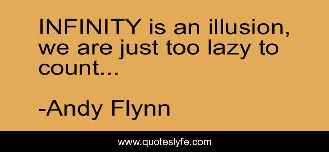 This page presents the quote "INFINITY is an illusion, we are just too lazy to count...". Author of this quote is Andy Flynn. This quote is about enthusiasm, infinity, belief, inspirational, illusion,.