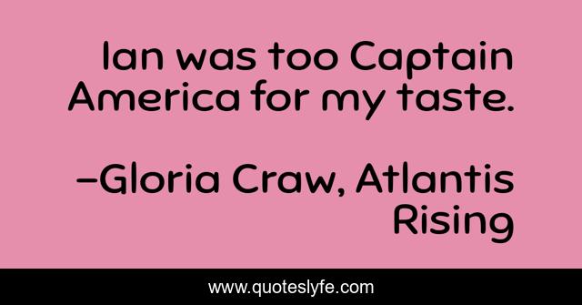 "Gloria Craw, Atlantis Rising Quotes." Quoteslyfe.com, 2025. Sat. 06 Dec. 2025. <https://www.quoteslyfe.com/quote/Ian-was-too-Captain-America-for-my-41684>.