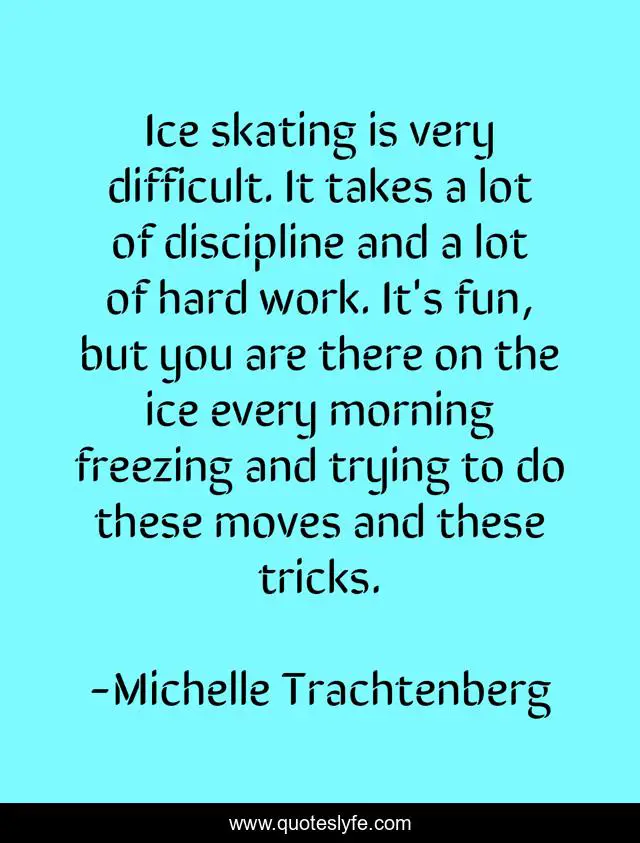 This page presents the quote "Ice skating is very difficult. It takes a lot of discipline and a lot of hard work. It's fun, but you are there on the ice every morning freezing and trying to do these moves and these tricks.". Author of this quote is Michelle Trachtenberg. This quote is about fun, work, hard work,.