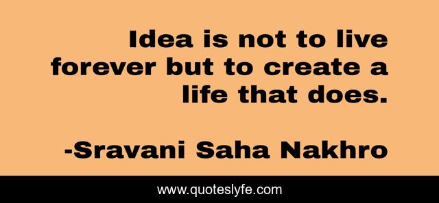 This page presents the quote "Idea is not to live forever but to create a life that does.". Author of this quote is Sravani Saha Nakhro. .