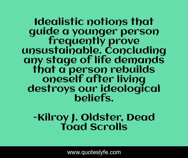 "Kilroy J. Oldster, Dead Toad Scrolls Quotes." Quoteslyfe.com, 2025. Mon. 08 Dec. 2025. <https://www.quoteslyfe.com/quote/Idealistic-notions-that-guide-a-younger-person-106172>.