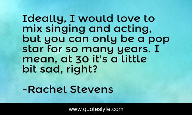 This page presents the quote "Ideally, I would love to mix singing and acting, but you can only be a pop star for so many years. I mean, at 30 it's a little bit sad, right?". Author of this quote is Rachel Stevens. This quote is about love, acting, singing, affection,.