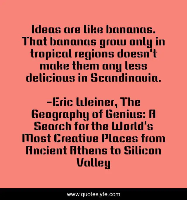 "Eric Weiner, The Geography of Genius: A Search for the World's Most Creative Places from Ancient Athens to Silicon Valley Quotes." Quoteslyfe.com, 2025. Tue. 09 Dec. 2025. <https://www.quoteslyfe.com/quote/Ideas-are-like-bananas-That-bananas-grow-205207>.