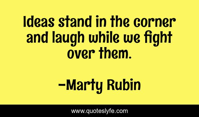 This page presents the quote "Ideas stand in the corner and laugh while we fight over them.". Author of this quote is Marty Rubin. This quote is about laughter, ideas, conflict,.