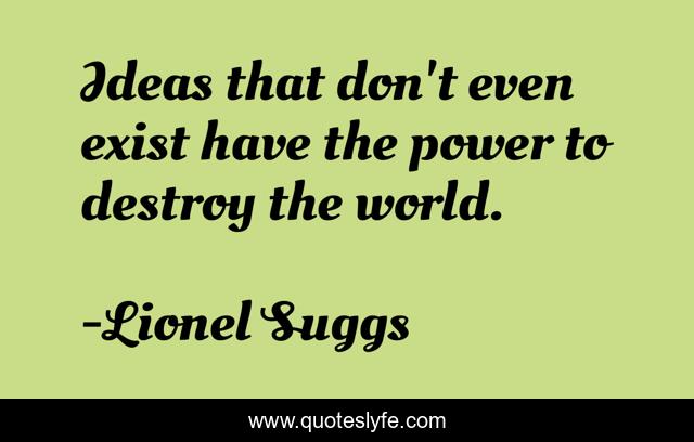 This page presents the quote "Ideas that don't even exist have the power to destroy the world.". Author of this quote is Lionel Suggs. This quote is about imagination, ideas,.