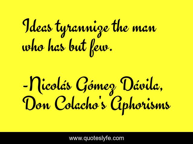 This page presents the quote "Ideas tyrannize the man who has but few.". Author of this quote is Nicolás Gómez Dávila, Don Colacho's Aphorisms. This quote is about ideas, ignorance,.