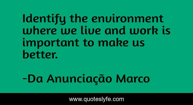 "Da Anunciação Marco Quotes." Quoteslyfe.com, 2025. Fri. 05 Dec. 2025. <https://www.quoteslyfe.com/quote/Identify-the-environment-where-we-live-and-84368>.