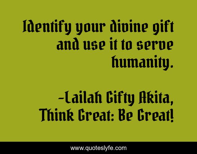 "Lailah Gifty Akita, Think Great: Be Great! Quotes." Quoteslyfe.com, 2025. Fri. 05 Dec. 2025. <https://www.quoteslyfe.com/quote/Identify-your-divine-gift-and-use-it-92809>.