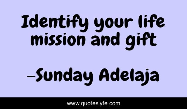 This page presents the quote "Identify your life mission and gift". Author of this quote is Sunday Adelaja. This quote is about life, gift, people, mission, self-identity, identity,.