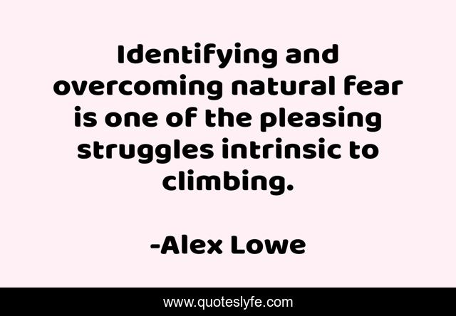 This page presents the quote "Identifying and overcoming natural fear is one of the pleasing struggles intrinsic to climbing.". Author of this quote is Alex Lowe. This quote is about natural, overcoming,.